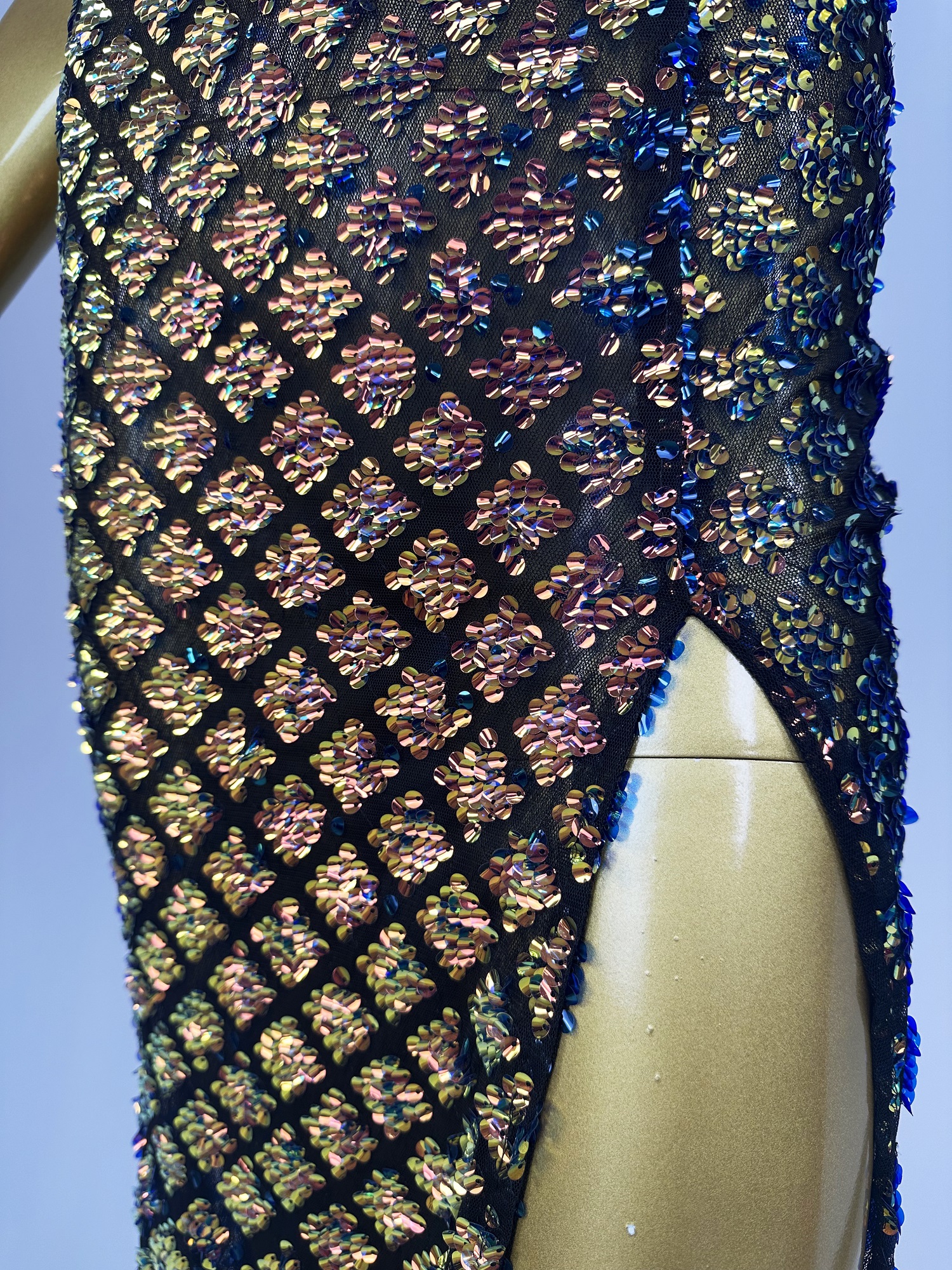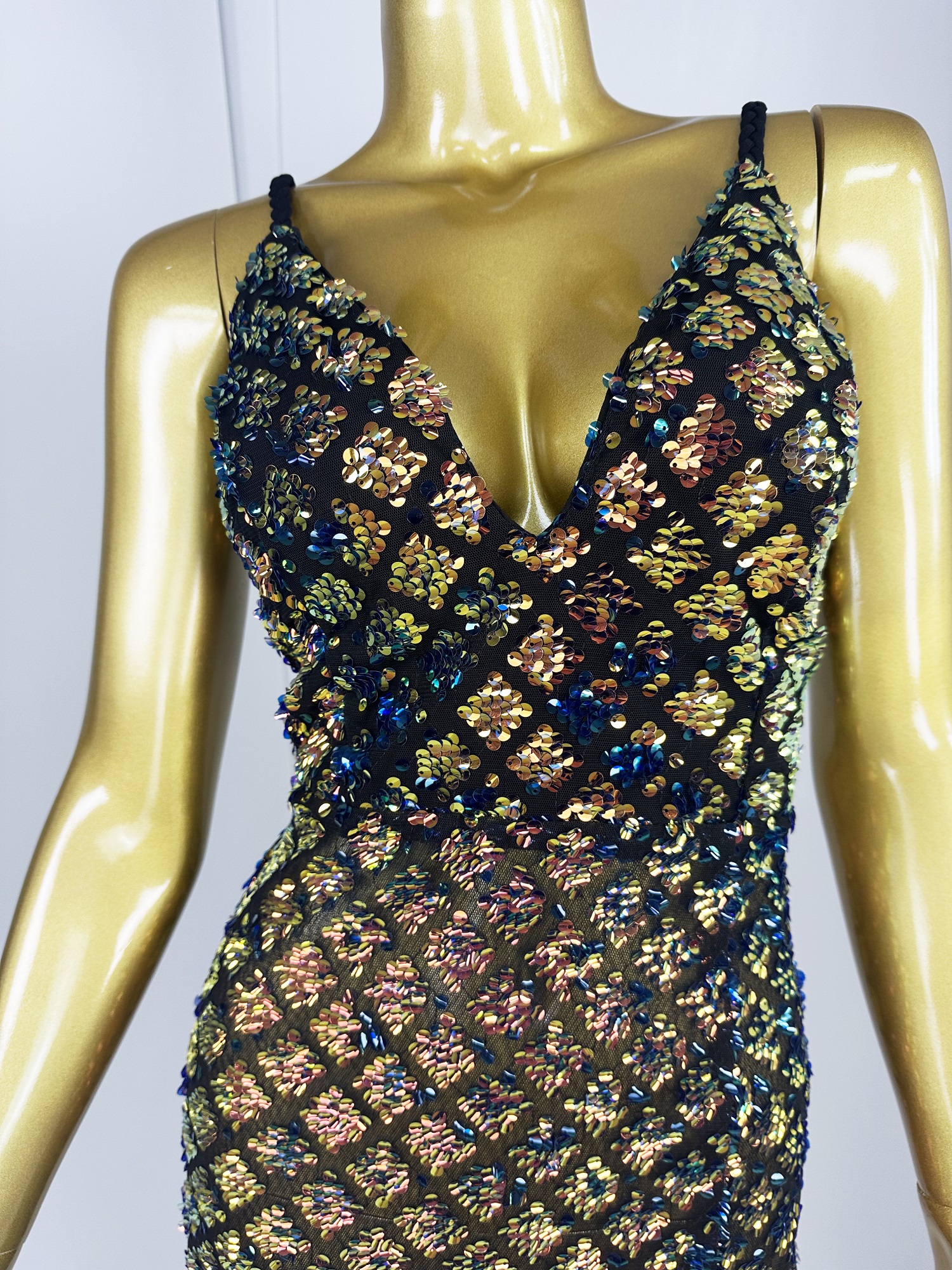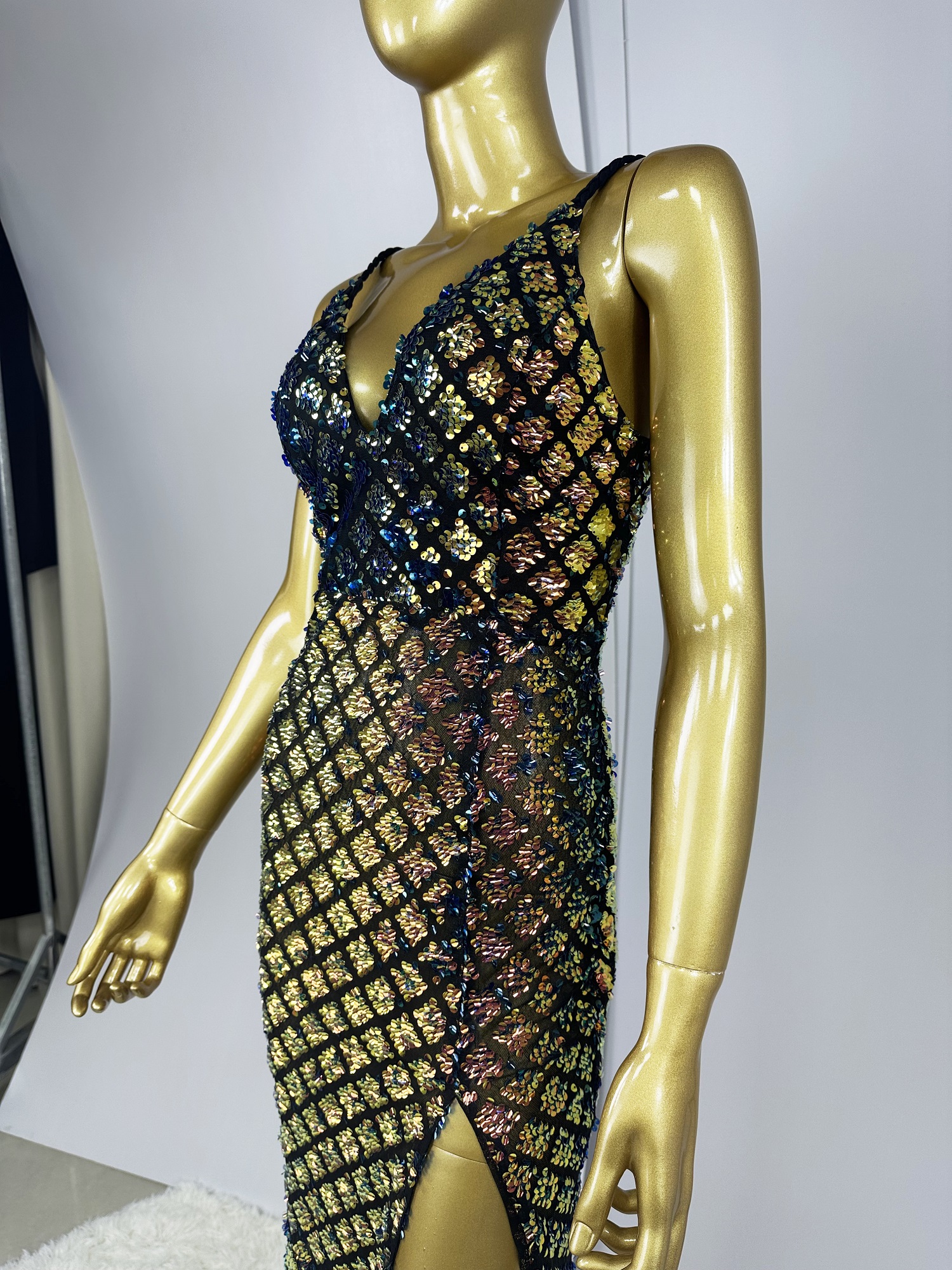 Hot Selling Braided Shoulder Strap V-Neck Semi-Sheer Slim-Fit High-Slit Sequin Evening Gown